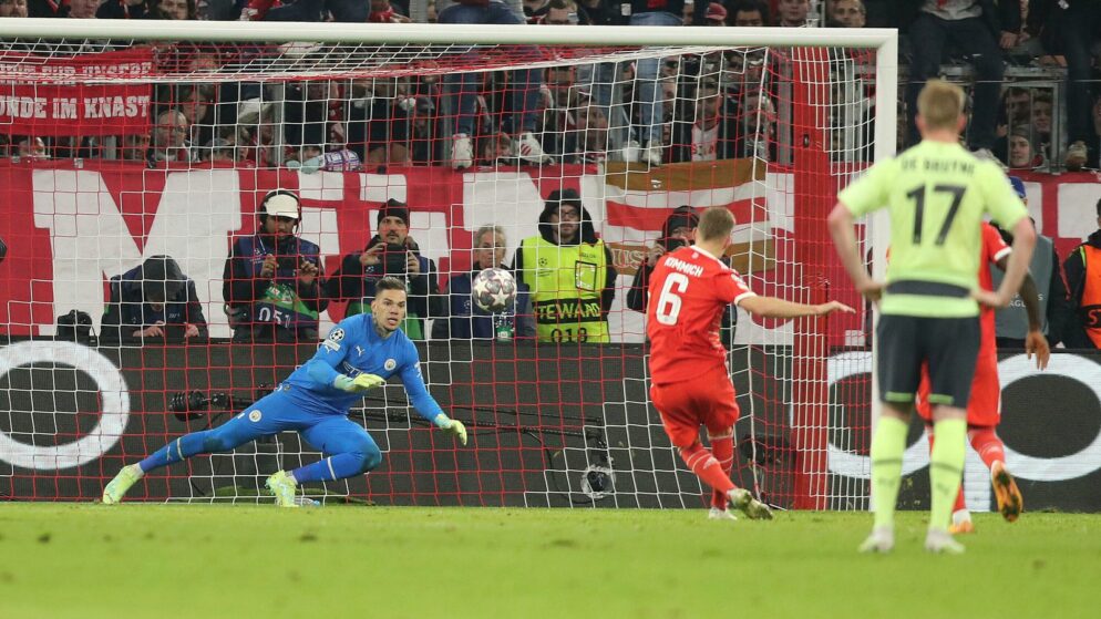In Tuesday’s headline match in the Champions League, Bayern Munich were destined for a second successive defeat against Manchester City after losing 3-0 in last week’s first leg. Referee Clement Turpin had other ideas, though, as he somewhat harshly adjudged Manuel Akanji to have handled the ball inside the penalty area. Joshua Kimmich converted the 82nd-minute penalty to claim an inconsequential 1-1 draw for the Bavarians.