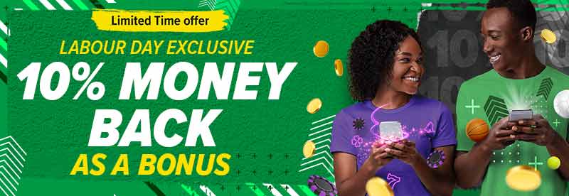 For this public holiday on May 1st, we’re giving you 10% of your money back on all losses on sports bets, Vegas games, or virtual games. Place your bets or wager on your favorite games, and if luck isn’t on your side, you’ll get 10% of your losses back as a bonus. Available only on May 1st ❗