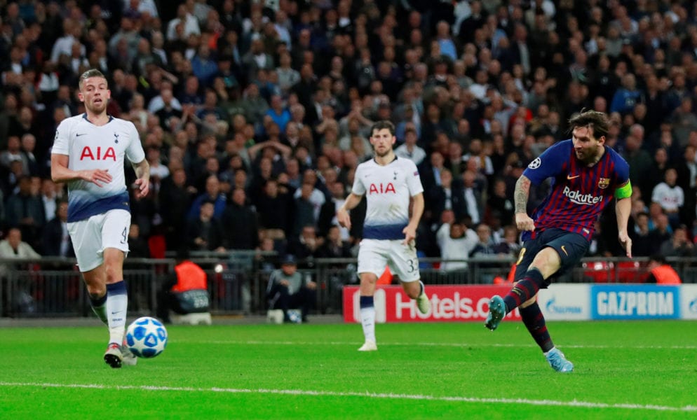 Soccer Football – Champions League – Group Stage – Group B – Tottenham Hotspur v FC Barcelona – Wembley Stadium, London, Britain – October 3, 2018 Barcelona’s Lionel Messi scores their fourth goal Action Images via Reuters/Andrew Couldridge