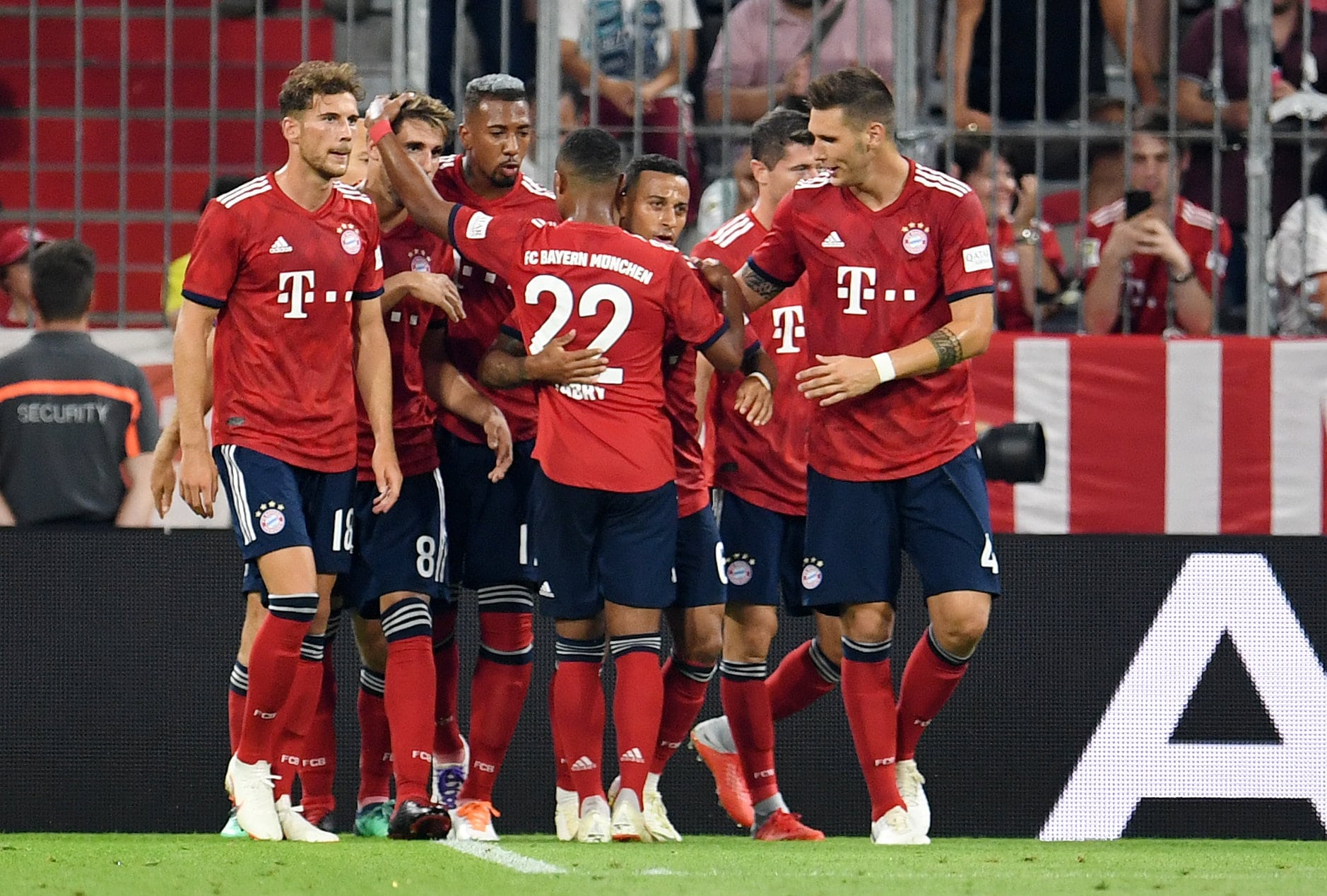 Soccer Football – Pre Season Friendly – Bayern Munich v Manchester United – Allianz Arena, Munich, Germany – August 5, 2018 Bayern Munich’s Javi Martinez celebrates their first goal with team mates REUTERS/Andreas Gebert