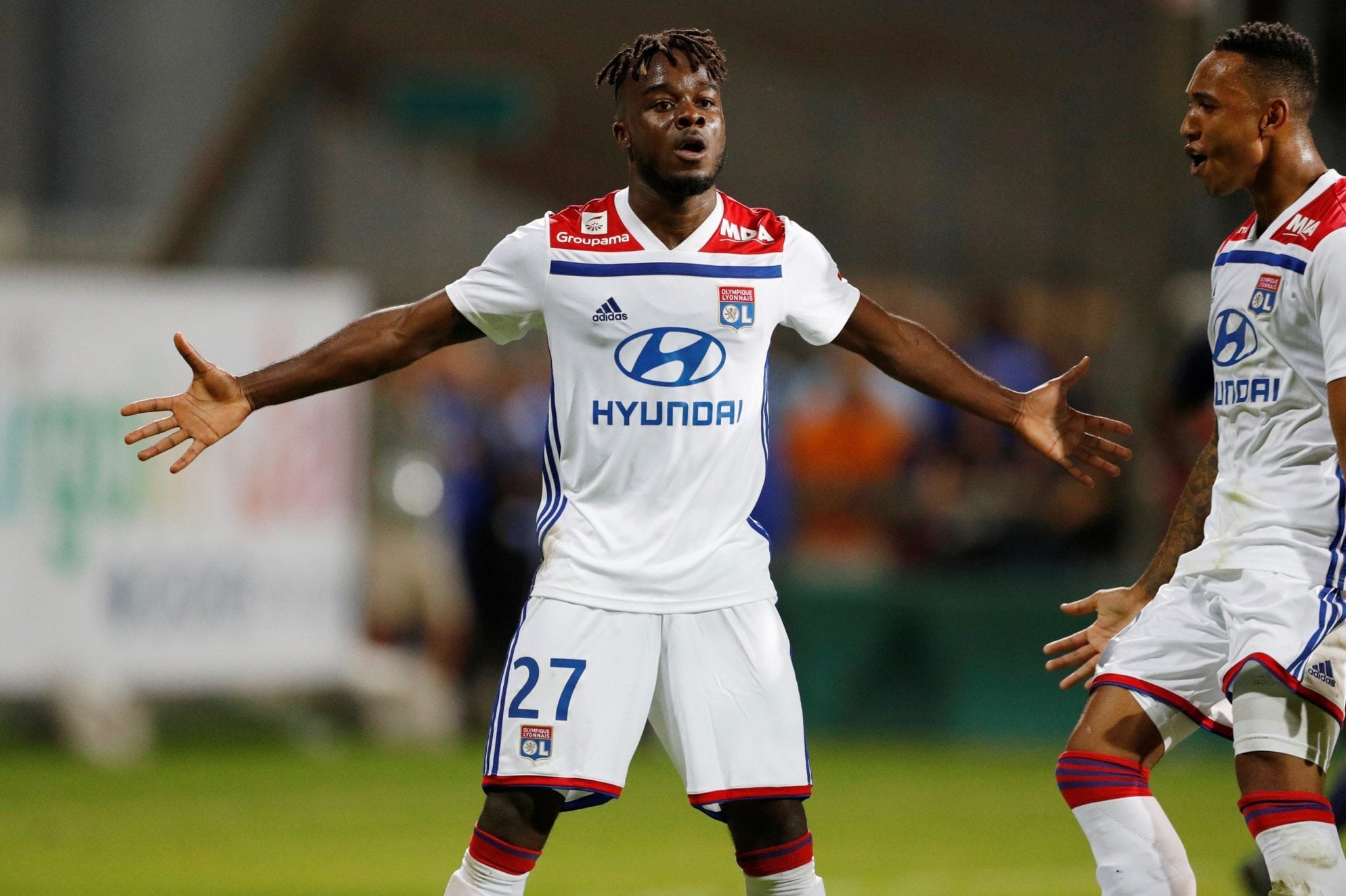Previous ImageNext Image Pre Season Friendly – Olympique Lyonnais v Fulham Soccer Football – Pre Season Friendly – Olympique Lyonnais v Fulham – Stade Pierre Rajon, Bourgoin-Jallieu, France – July 21, 2018 Lyon’s Maxwell Cornet celebrates scoring their third goal Action Images via Reuters/John Sibley