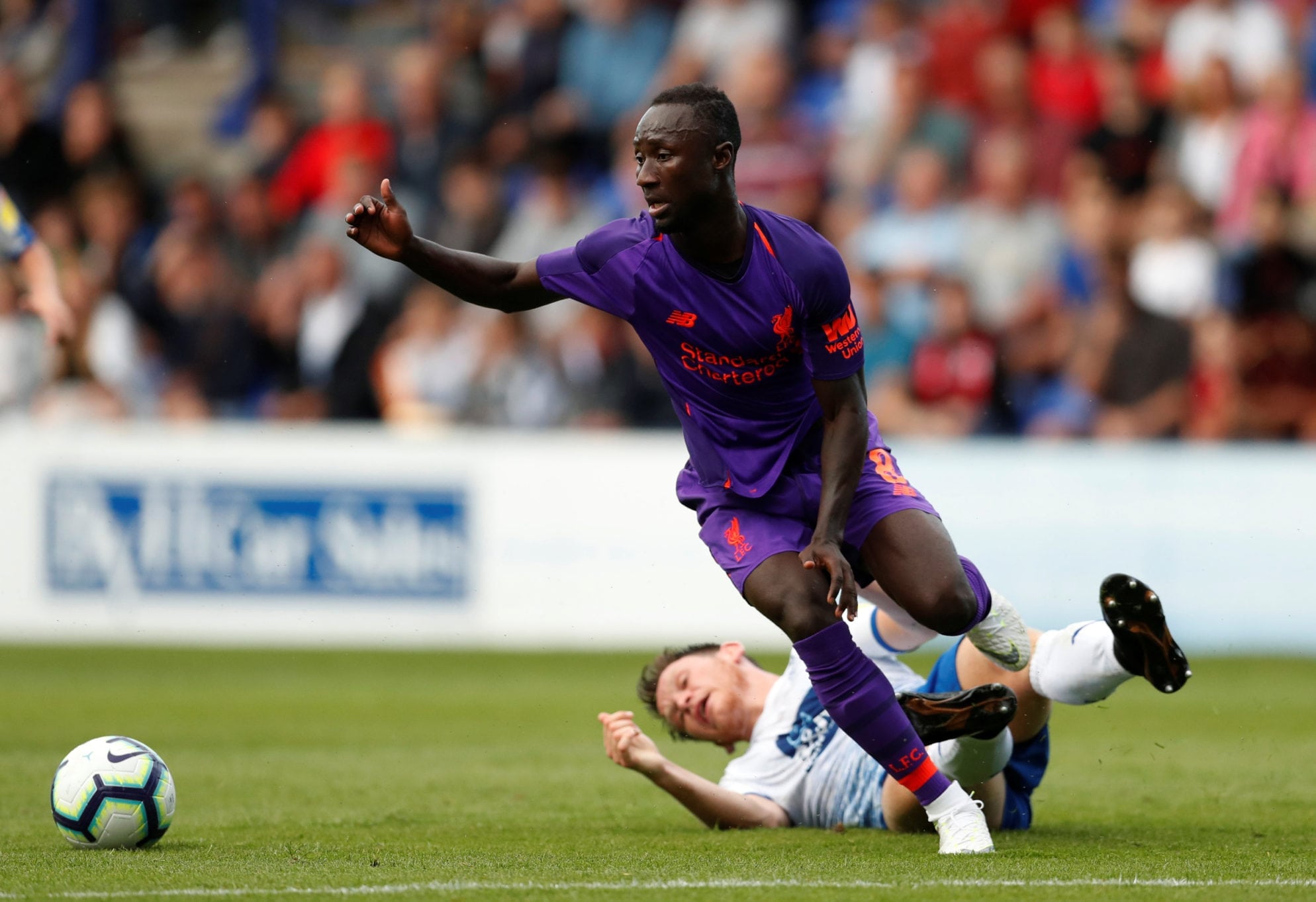 Previous ImageNext Image Pre Season Friendly – Tranmere Rovers v Liverpool Soccer Football – Pre Season Friendly – Tranmere Rovers v Liverpool – Prenton Park, Tranmere, Britain – July 10, 2018 Liverpool’s Naby Keita in action with Tranmere’s Connor Jennings Action Images via Reuters/Matthew Childs