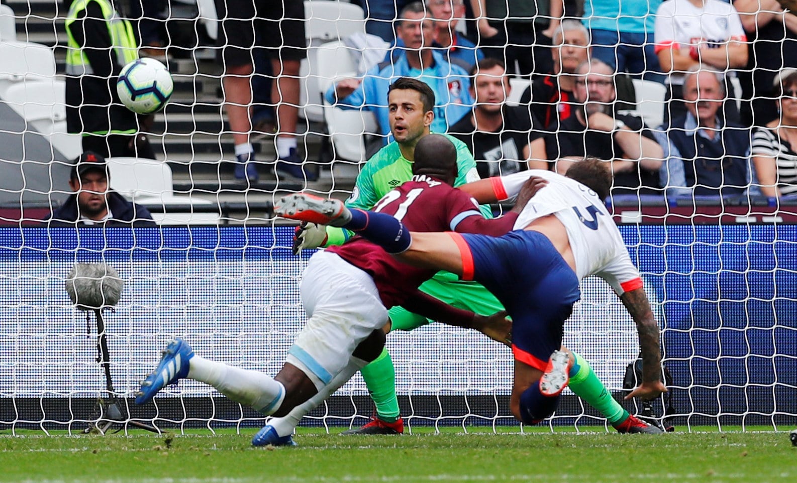 Soccer Football – Premier League – West Ham United v AFC Bournemouth – London Stadium, London, Britain – August 18, 2018 Bournemouth’s Steve Cook scores their second goal REUTERS/Eddie Keogh EDITORIAL USE ONLY. No use with unauthorized audio, video, data, fixture lists, club/league logos or “live” services. Online in-match use limited to 75 images, no video emulation. No use in betting, games or single club/league/player publications. Please contact your account representative for further details.
