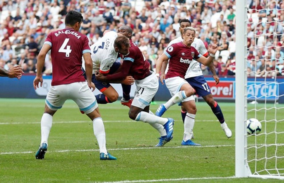 Soccer Football – Premier League – West Ham United v AFC Bournemouth – London Stadium, London, Britain – August 18, 2018 Bournemouth’s Steve Cook scores their second goal Action Images via Reuters/Matthew Childs EDITORIAL USE ONLY. No use with unauthorized audio, video, data, fixture lists, club/league logos or “live” services. Online in-match use limited to 75 images, no video emulation. No use in betting, games or single club/league/player publications. Please contact your account representative for further details.